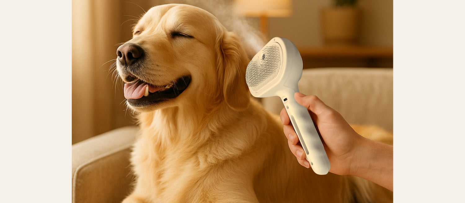 “It works beautifully on Bella (our Cocker Spaniel). She has sensitive skin, but this brush is soft, and the mist really helps.”